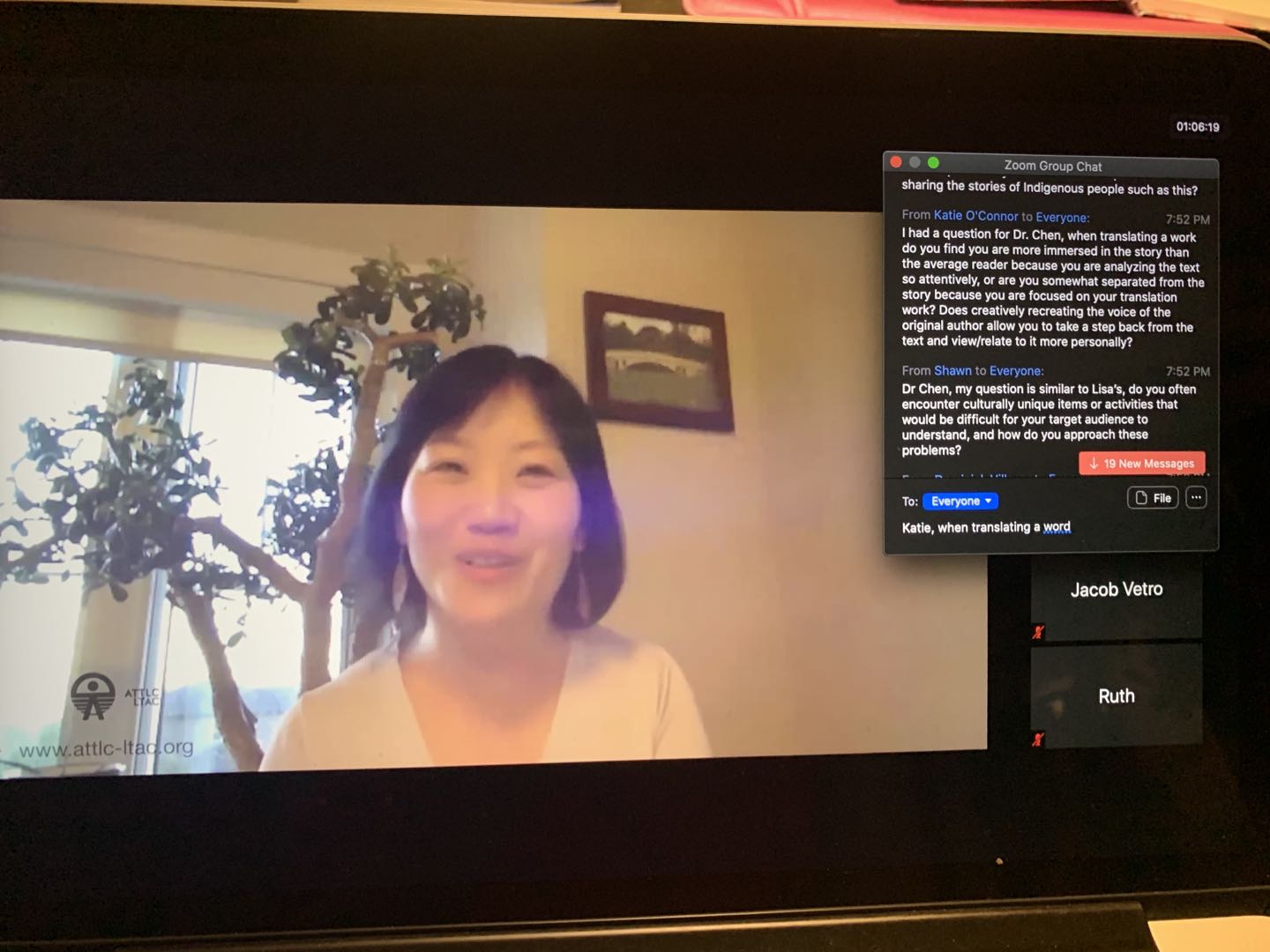 2020年9月30日,加拿大文学翻译家协会(Literary Translators’ Association of Canada)和阿尔伯塔大学现代语言和文化研究系(Modern Languages and Cultural Studies)联合举办“世界翻译日”线上庆祝活动。我会理事陈蕾蕾博士受邀参加了此次活动。