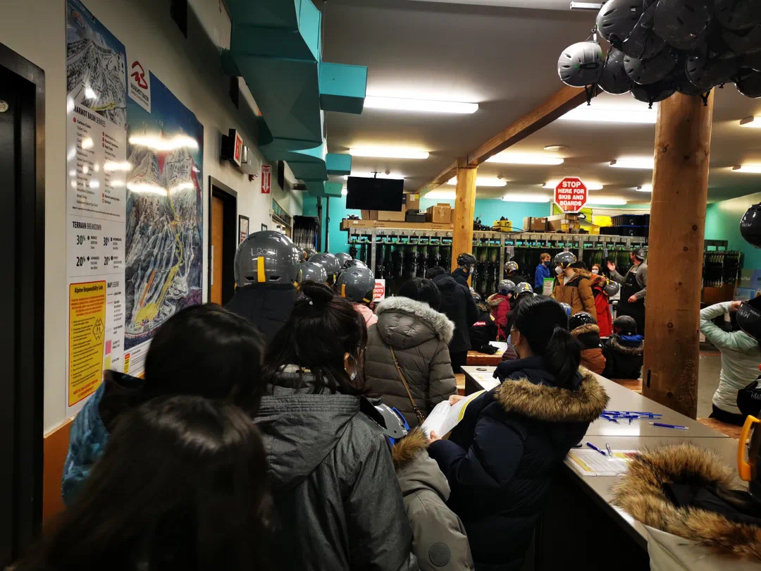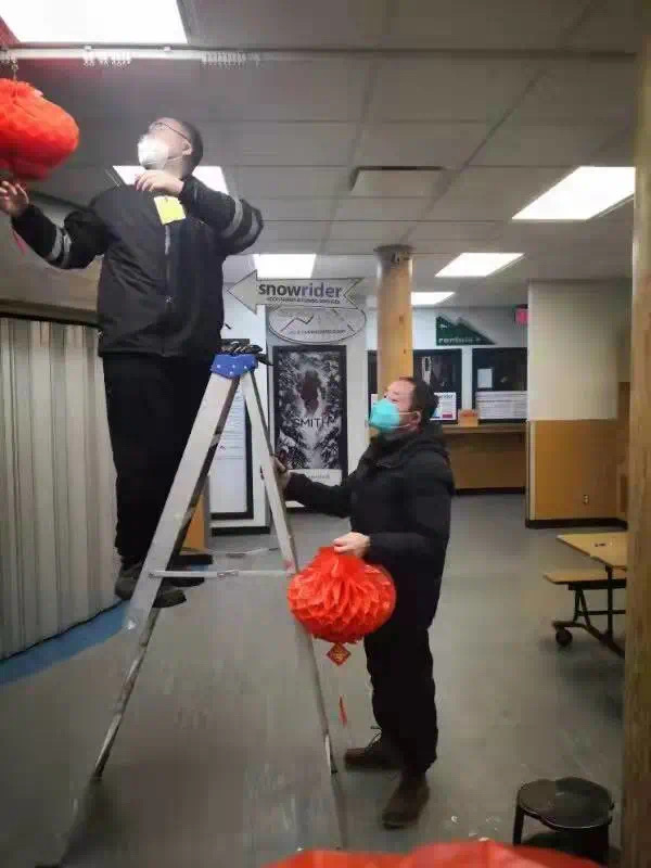 因为想给更多的同胞提供接触滑雪的机会,本次包场滑雪领装备人数达到历史最高,足足有三分之二的人。这也给现场分发表格的志愿者带来极大压力。在这里也要感谢可爱的志愿者们,大家早早来到雪场,挂灯笼、贴春联,张灯结彩,还准备了祝福的糖果和喜庆的抽奖箱。在众多志愿者有条不紊的努力下,不到半小时,就把滑雪场营造出浓浓的春节气氛,让大家在异国他乡也有浓浓地过年的感觉。向最美的志愿者表示感谢!每次活动,因为有你们的默默付出,才这么成功顺利!也借此机会,感谢积极报名参加活动者,大家的配合理解,遵守秩序和规则,也是活动顺利进行的保证!