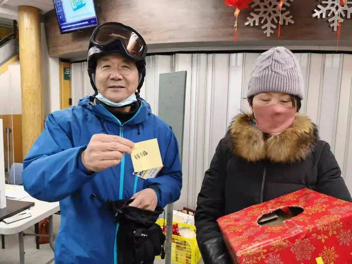 现场还有抽奖活动,我会会长马君强、各主办单位负责人及志愿者们代表抽出多名幸运者,为本次包场滑雪画上了圆满的句号。