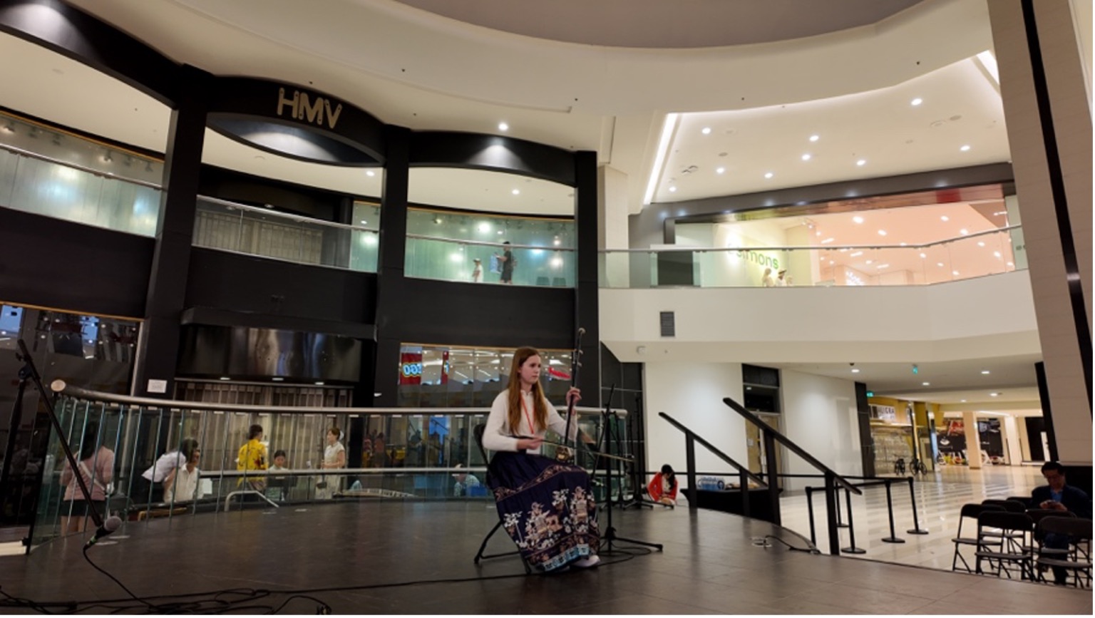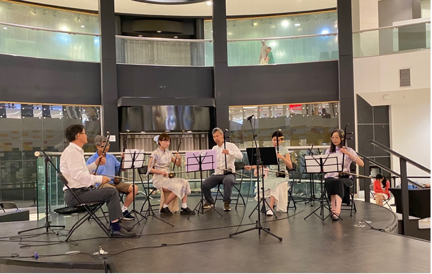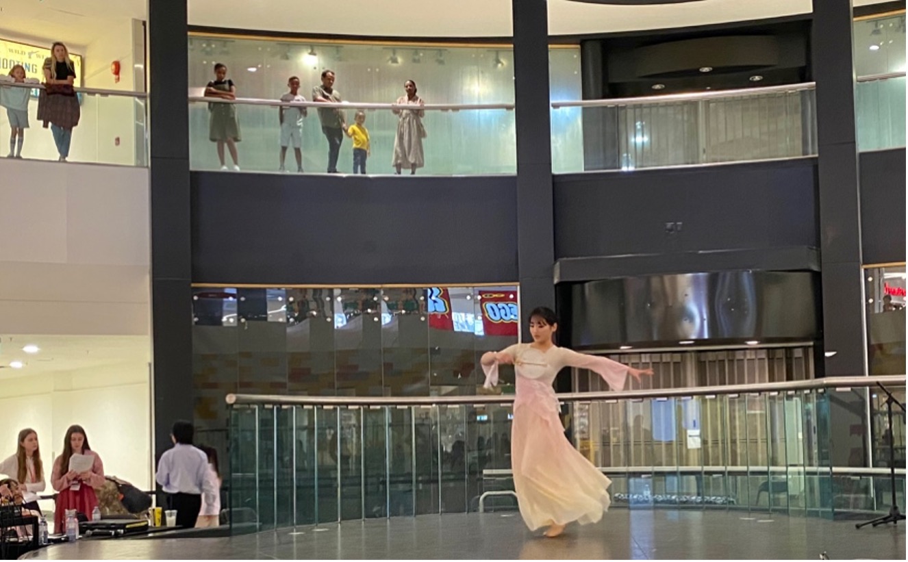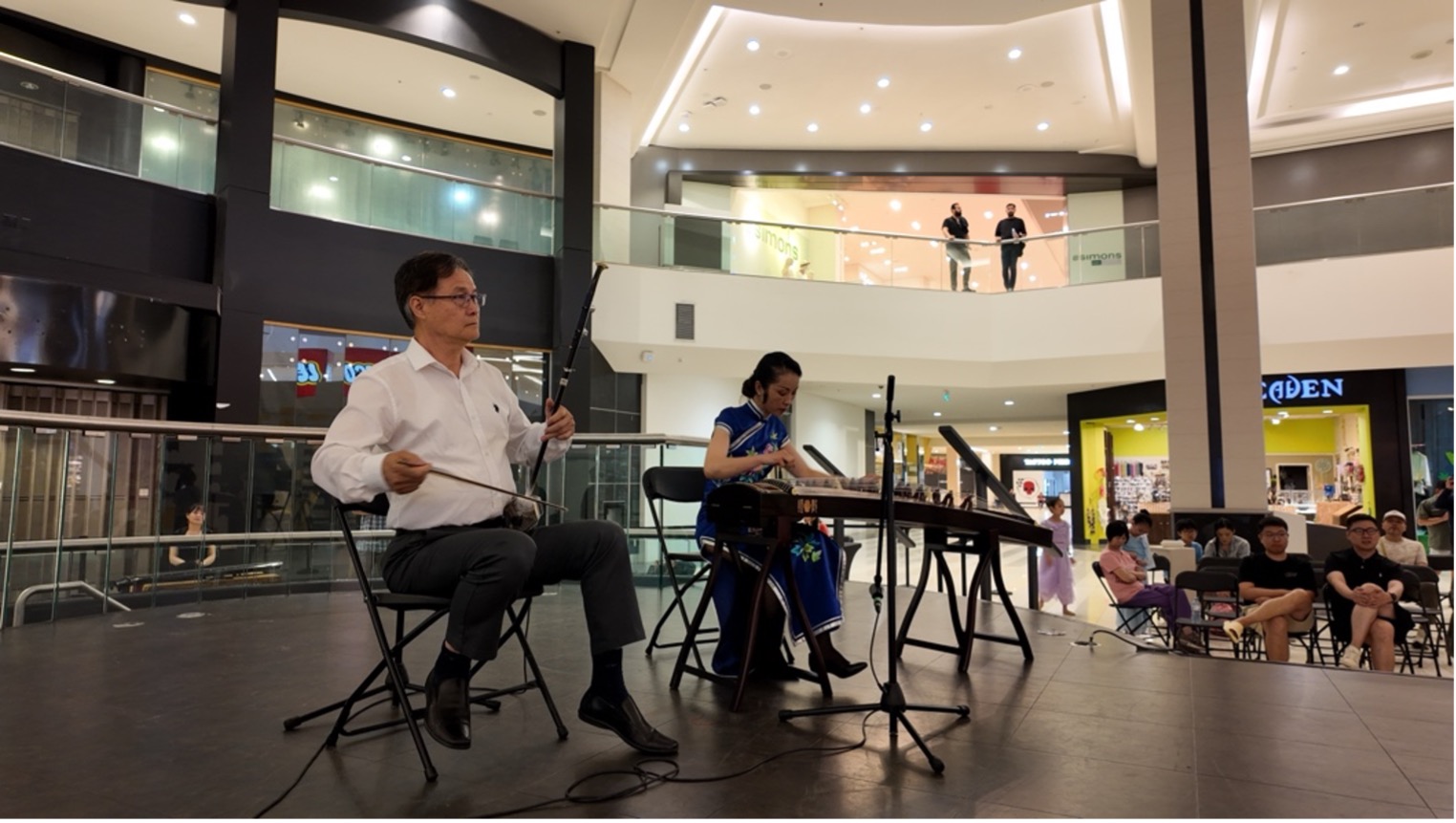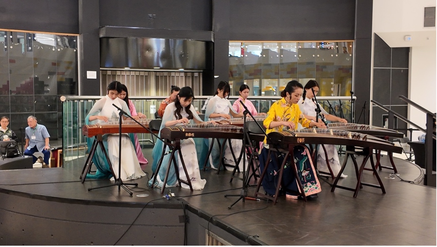 由马文驰琴艺中心带来的古筝合奏,演绎了《小鸟嘲讽》《渔舟唱晚》《瑶族舞曲》,展现出多样的民族风情。