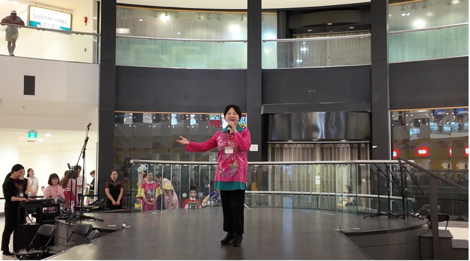活动在庄严的加拿大国歌声中拉开帷幕,由爱城京剧研习社严社长Peggy Yu领唱。