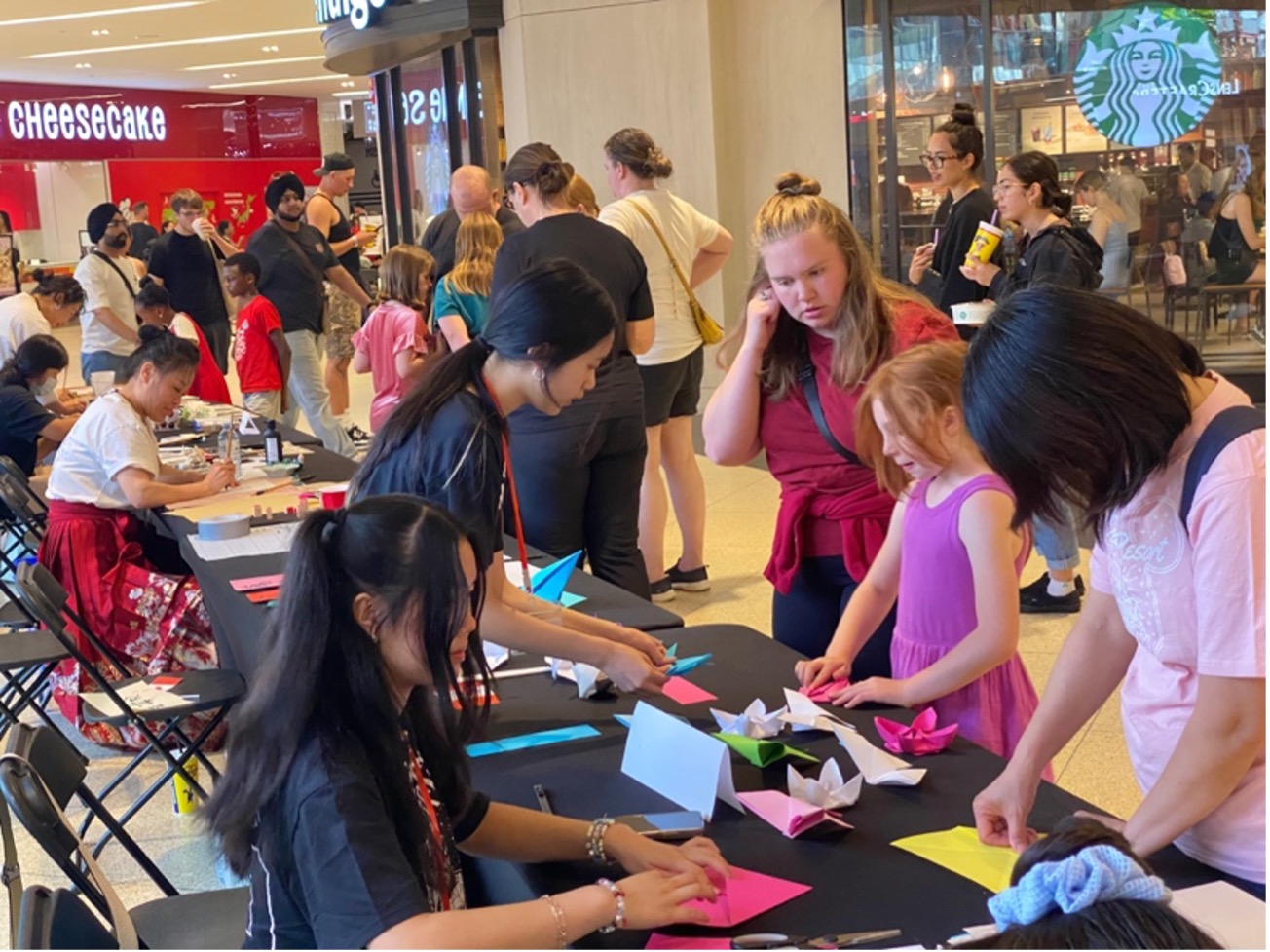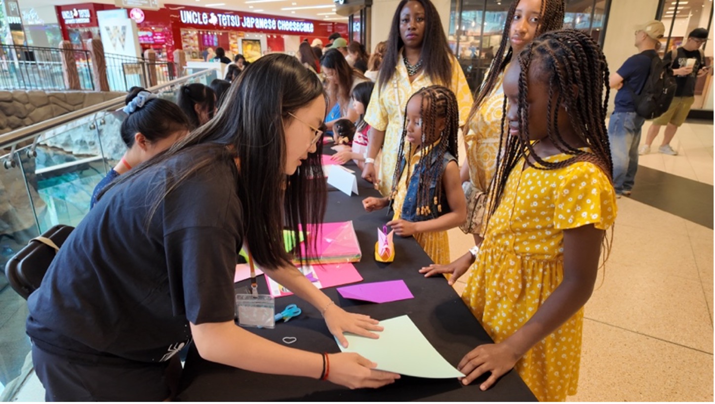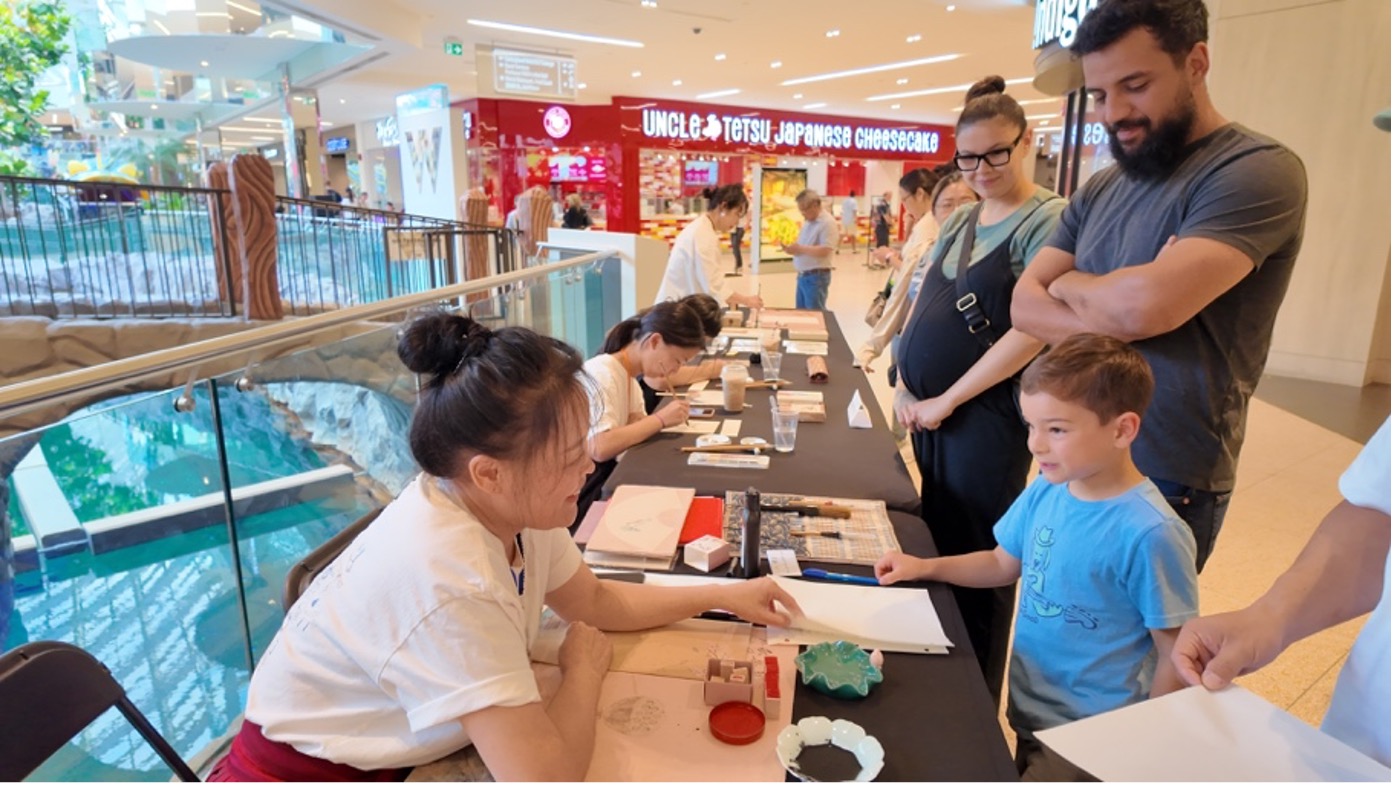 折纸和国画体验摊位同样人气高涨,不少孩子在志愿者的指导下学会了折出手里剑、纸鹤等造型,家长们纷纷拍照留念。