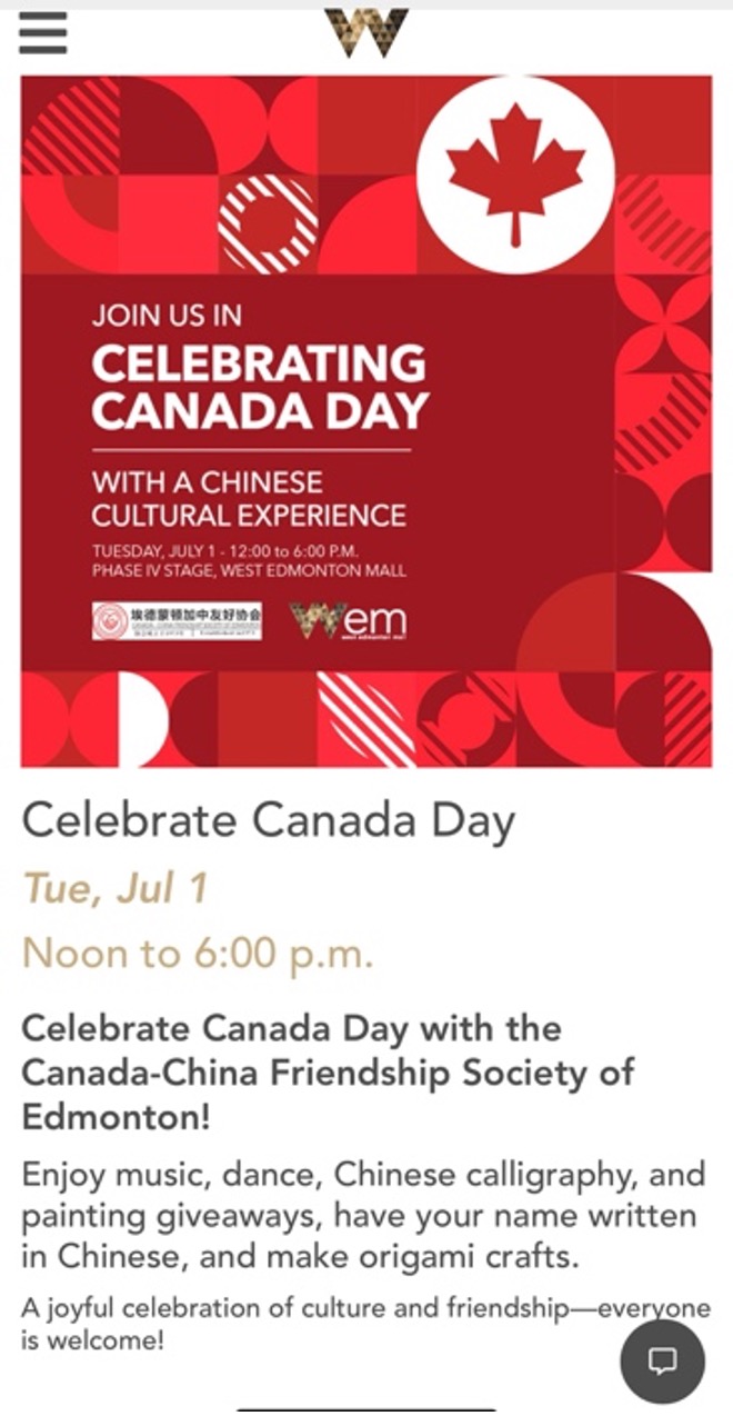 2025年7月1日,加拿大国庆日当天,由加拿大埃德蒙顿加中友好协会主办的“中国文化展”在西埃德蒙顿购物中心(West Edmonton Mall)隆重举行。作为北美最大的购物中心之一,西茂不仅是加拿大的商业地标,更是多元文化交流的重要平台。此次活动以弘扬中华优秀传统文化、促进中加民间友好为宗旨,吸引了众多本地居民和游客参与,成为国庆庆典中的一大亮点。
