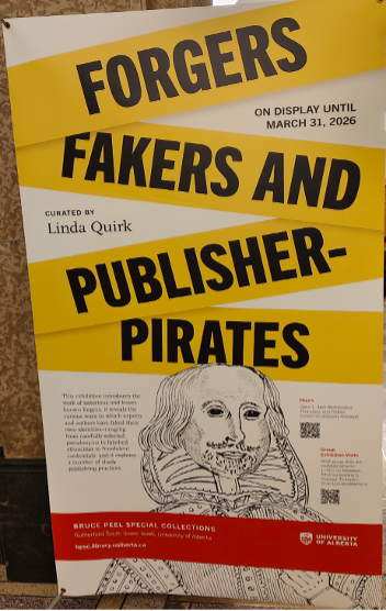 金秋时节的阿尔伯塔大学校园色彩斑斓,层林尽染的树叶仿佛映照着这里生动而多元的文化氛围。加中友好协会受邀参加阿尔伯塔大学特藏馆 “Forger, Fakers and Publisher-Pirates – A Book History Lesson for Our Times” 专题展的开幕酒会。许多老朋友久别重逢,寒暄问候不断,让Bruce Peel 特藏馆的空间显得格外温暖。