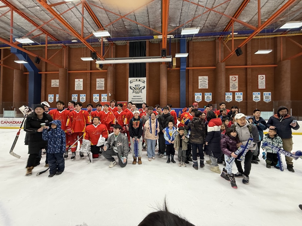 埃德蒙顿,2026 年 1 月 17 日 — 中国男子国家冰球队于 NAIT Arena 对阵 NAIT Ooks 的友谊赛在阿尔伯塔省埃德蒙顿圆满表现。此次比赛不仅为中国队提供了宝贵的实战机会,也成为中加两国体育、文化交流的重要一环。比赛当天,现场观众情绪高涨,加中两国球迷齐聚一堂,为双方队伍加油助威。