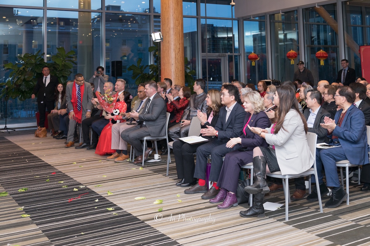 UCP 党领袖、阿尔伯塔省省长 Danielle Smith 出席活动并向华人及亚裔社区致以新春祝贺。阿省多位部长、市长和政界代表亦到场祝贺,与社区代表深入交流。