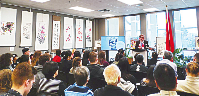 10月30日《中国故事》书画展闭幕典礼;《友好义卖》捐资仪式;两场由北京外国语大学商学院牛华勇院长主讲的《经济改革的历史、现状与展望》和埃德蒙顿康考迪亚大学马诗丽博士(Marcella Siqueira Cassiano)主讲的《中国改革开放四十年:社会变革的回顾与展望》专题讲座后,历时一个月庆祝中国改革开放40周年的系列活动完满落下帷幕。