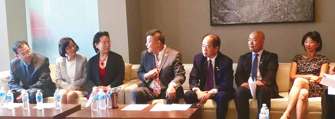 左起:埃德蒙顿加中友好协会顾问、中国侨联海外委员马君强先生,埃德蒙顿加中友好协会迟文荣会长,埃德蒙顿统促会王力力会长,中国侨联权益保障部黄晖副部长,埃德蒙顿统促会顾问、洪門民治党邝健民主委,李氏公所李东方主席,中国侨联法律顾问委员会海外委员陈维鹃大律师。